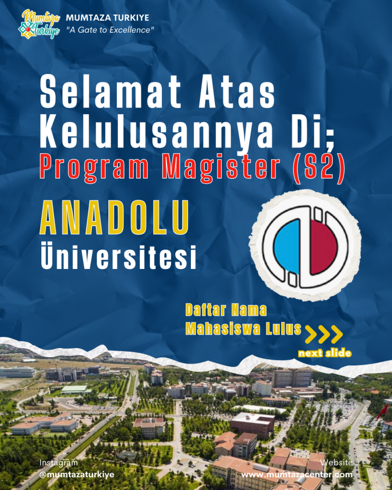 Selamat kepada Mahasiswa Baru Program Sarjana (S1) Mumtaza Turkiye 2025 yang Lulus Pendaftaran Jalur Berkas di Karabük University NAMA LENGKAP ASAL SEKOLAH JURUSAN MUHAMMAD HIFNI SUBHAN ASRAN PONDOK MODERN DARUSSALAM GONTOR BUSINESS Kami mengucapkan selamat kepada mahasiswa baru program Sarjana…