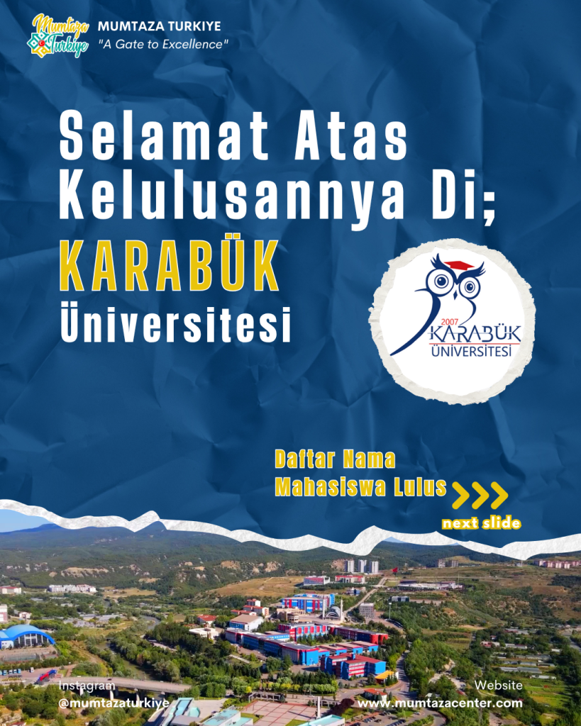 Bagi Anda yang bercita-cita melanjutkan studi Sarjana (S1) di Karabük University atau universitas negeri lainnya di Turki, jangan ragu! Masih banyak peluang dan kesempatan menanti di Mumtaza Turkiye. Tetap semangat dan teruslah mengejar impian untuk kuliah di luar negeri.