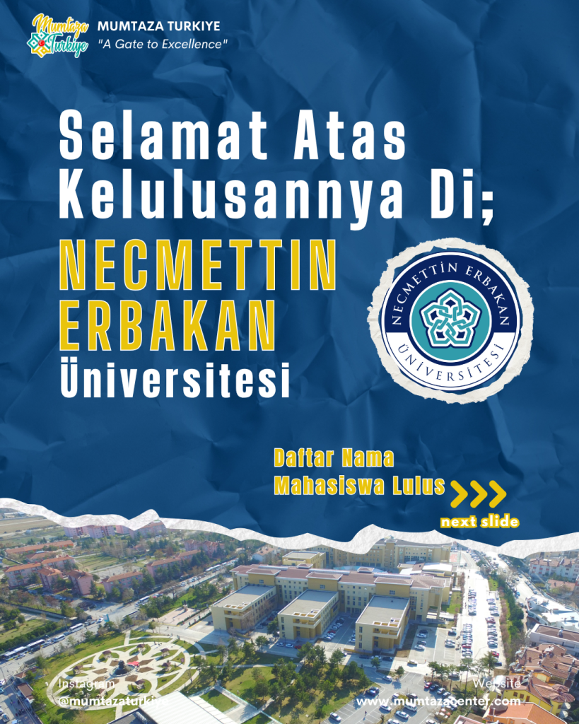 Bagi Anda yang bercita-cita melanjutkan studi Sarjana (S1) di Necmettin Erbakan University atau universitas negeri lainnya di Turki, jangan ragu! Masih banyak peluang dan kesempatan menanti di Mumtaza Turkiye. Tetap semangat dan teruslah mengejar impian untuk kuliah di luar negeri.